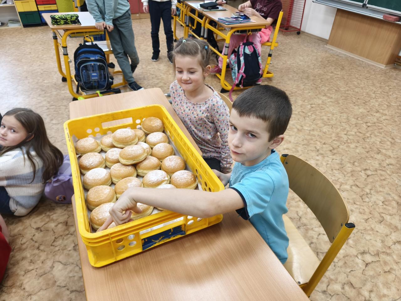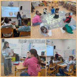 Na lekcji plastyki połączyliśmy edukację czytelniczą ze sztuką dzięki książce Můj šálek umění Kateřiny Karolik. Dzieci najpierw poznawały znaczenie powiedzenia „můj čálek kávy” i zastanawiały się, co im się podoba i dlaczego. Wspólnie przyjrzeliśmy się różnorodności stylów artystycznych oraz ich znanym przedstawicielom, co pomogło dzieciom zrozumieć, że każdy inaczej postrzega świat.